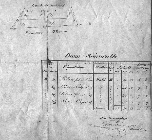 Flurkarte gezeichnet vom Schönecker Geometer Wellenstein, der zwischen