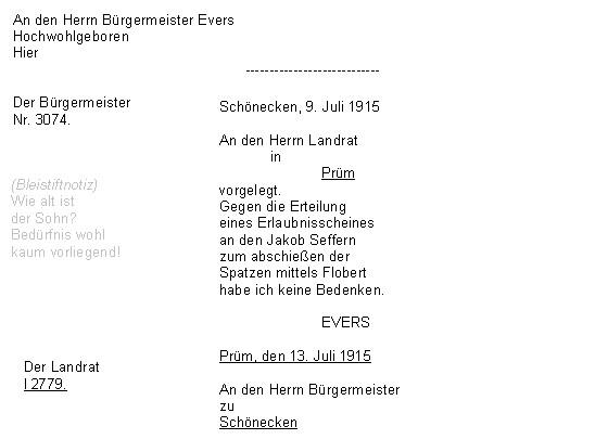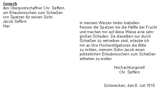 machen habe, das Flobert gegen Tauben und Spatzen, nachdem die ersteren an der Kirche, die