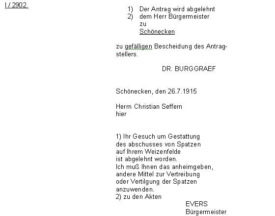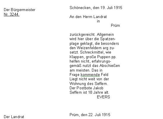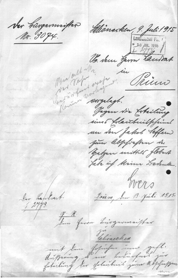 An die Polizeiverwaltung der Bürgermeisterei
