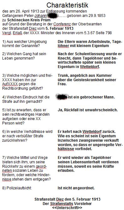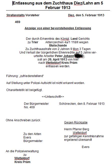 1913 - Entlassung aus dem Zuchthaus Diez am 5. Februar 1913.
