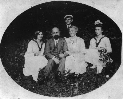Familie aus den frühen zwanziger Jahren, links im Bild die Grabstätte der Familie anno