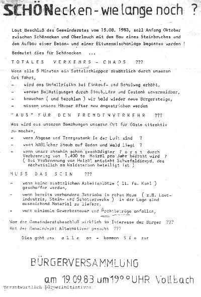 sich Widerstand gegen die Inbetriebnahme des Steinbruchs "Auf Ratenberg". Der Gemeinderatsbeschluss vom 15.08.1983 wurde trotz des Widerstandes der