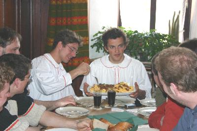 Bild rechts: Raffer und Läufer lassen sich die gebackenen Eier gut schmecken.
