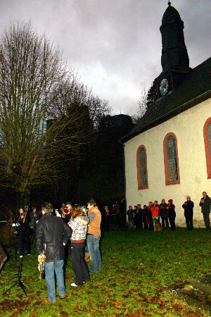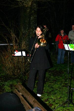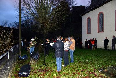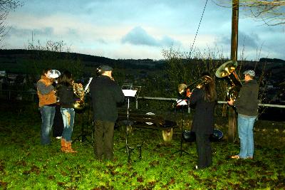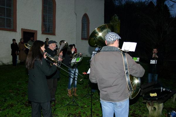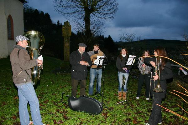 Kapellenmauer hatten sich heute etwa 60 Zuhörer eingefunden. Die siebenköpfige Abordnung der Blechbläser des Musikvereins
