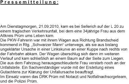 September 2010 / Polizeibericht der PI Prüm: | ||||||