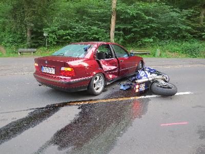 Nimsreuland Verkehrsunfall mit Sachschaden. Der Fahrzeugführer eines PKW BMW befuhr am Montag, den 23.06.2014, gegen 06.45 Uhr, die Gefällstrecke der K128 aus Richtung Heisdorf kommend in Richtung Schönecken. Ausgangs einer scharfen Linkskurve musste er einem entgegenkommenden Fahrzeugführer eines blauen Polo nach rechts ausweichen. Hierdurch kollidiert der BMW-Fahrer mit der Schutzplanke, zu einer Kollision mit dem entgegenkommenden PKW kam es nicht. Am BMW entstand Sachschaden im Heckbereich, der Fahrer des Polos setzte seine Fahrt fort. Der Fahrer des blauen Polos bzw. Zeugen werden gebeten sich mit der Polizei Prüm, 06551/9420, in Verbindung zu setzen. Kleinlangenfeld |