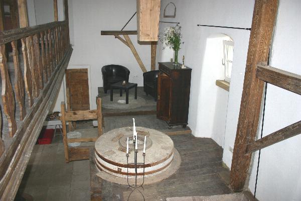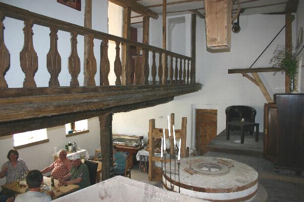 kühlen Erfrischungsgetränken oder im Gebäude mit Kuchen, Mühlenbrot und