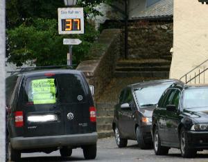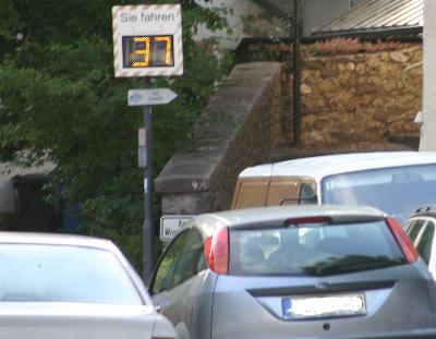 13.45 Uhr Messung I: 150 Kraftfahrzeuge, davon 137 PKW, 9 Kleinbusse/ Pritschenwagen, 2 Krafträder, 2 Roller, 10 Fußgänger und 6 Radfahrer. 12 Raser. Ortsfremde Kennzeichen: BN, D, DN, E, EU, HD, HN, K, OB, STA, UL, sowie die Länderkennzeichen B, L und NL. |
