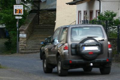 Samstag, 02.05.2015, Zählung von 16.30 - 17.30 Uhr: 143 Kraftfahrzeuge, davon 132 PKW, 10 Krafträder und 1 Traktor. 3 PKW wurden von Rasern gesteuert, deutlich zu schnell, ausschließlich nur mit Kennzeichen "BIT" oder "PRÜ" unterwegs. Außerdem konnten wir folgende Kennzeichen feststellen: AC, BN, GM, KL, KR, LEV, MG, SIM, ST, STA, TR, VIE und die Länderkennzeichen NL, B und L. |