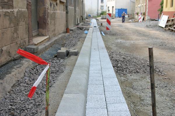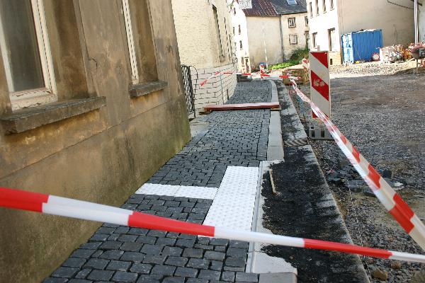 22.08.2015: Die Pflasterarbeiten haben begonnen. Wenn die Bürgersteige im 1. Bauabschnitt fertiggestellt sind, wird die erste Fahrbahnschicht aufgetragen, dann beginnt der 2. Bauabschnitt. Die finale Asphaltierung erfolgt nach Fertigstellung des 3. Bauabschnitts für die gesamte Sanierungsstrecke. |