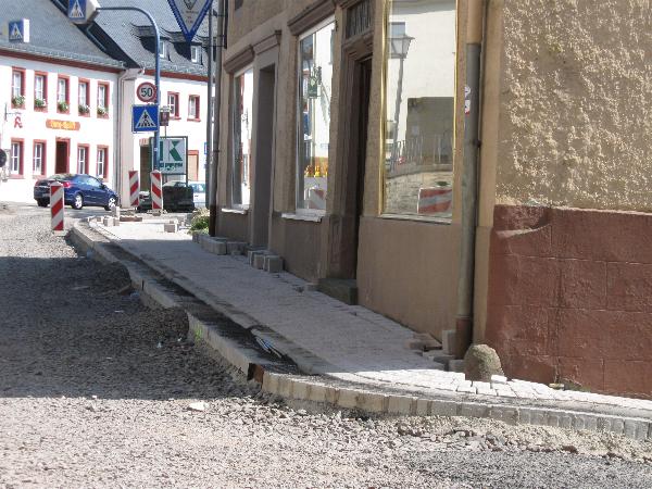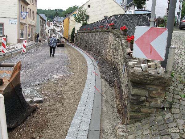 23.09.2015: Der 1. Bauabschnitt ist beendet, heute wurde die Fahrbahndecke für den 2. Bauabschnitt bereits teilentfernt. Für die Dauer des 2. Bauabschnitts sind die Straßen "Unter der Pfordt" und "Von-Hersel-Straße" in Richtung Prüm nicht mehr durchfahrbar und somit Sackgassen. | ||