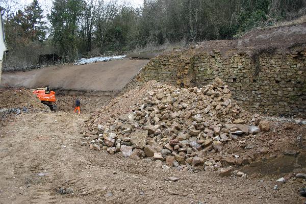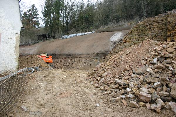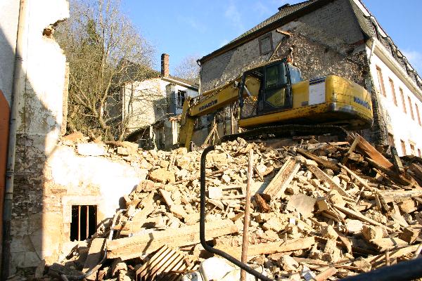 Nach dreimonatiger Pause wird seit Gestern wieder mit den Abbrucharbeiten fortgefahren. Schweres Gerät ist im Einsatz. |