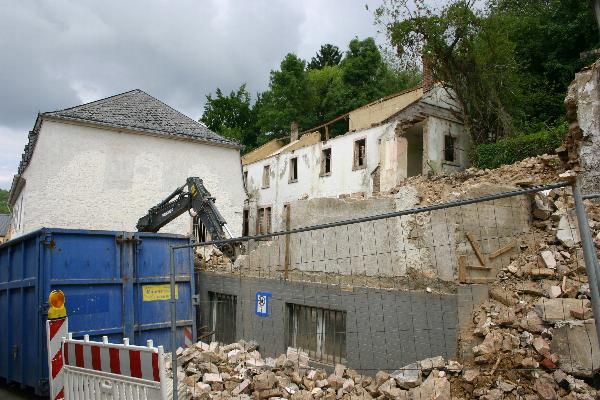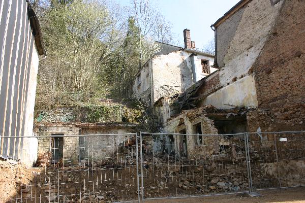 Mittlerweile ist das obere Gebäude schon ganz abgerissen. |