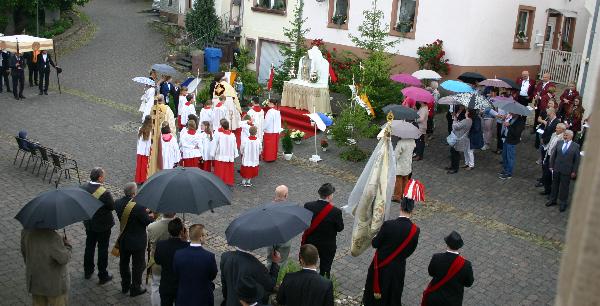 Ein leichter Regenguss bleibt den Gläubigen heute nicht erspart. |