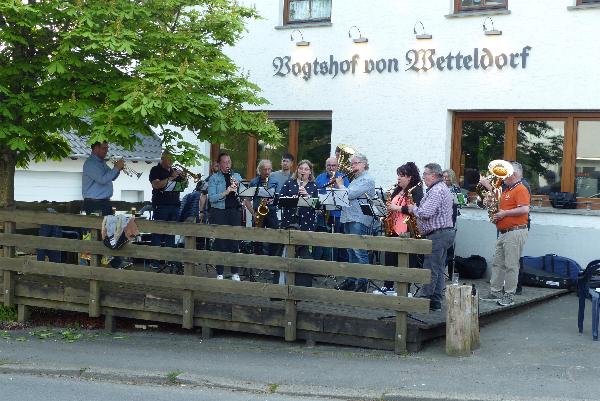 Die etwa 100 Schaulustigen feierten danach beim Gasthaus Vogtshof bis in den 1. Mai hinein. |