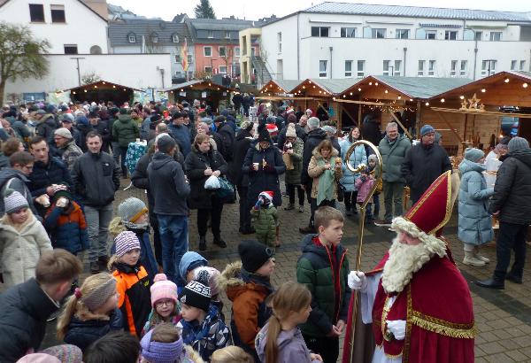 Am 13.12. war ab 17.00 Uhr Glühweinumtrunk, am 15.12.2025 war die offizielle Eröffnung des Weihnachtsmarktes. Geboten wurde weihnachtliche Musik durch den Kinderchor Schönecken und die Musikvereine Schönecken und Wawern. Zur Kinderbescherung kam der Nikolaus, danach fand noch eine große Verlosung statt. Da war richtig was los, Bilder sagen mehr als Worte, sehen sie selbst: | |