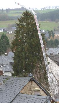 der große Baum am Alten Amt adventlich geschmückt und mit Lichterketten versehen. Die Gemeinde Schönecken, vertreten durch Bauhof, Bürgermeister und