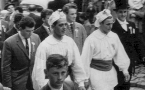die Sodalität mit Raffer und Läufer vom Vereinslokal in die Kirche. Um die Mittagszeit