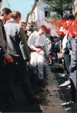 Junggesellen halten in dieser Zeit dem Raffer eine Gasse frei, damit er die Eier aufraffen