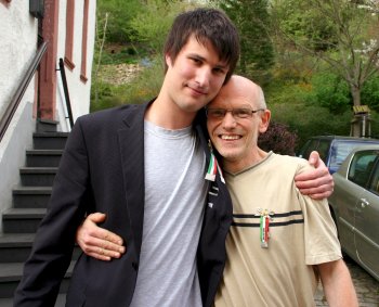 mit Handschlag und Bruderkuss, den Zeichen für Fairness und Gemeinschaft. Der Raffer muß