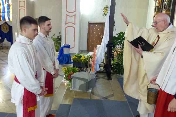 in der Wetteldorfcr Kirche: Die Segnung der Wettkämpfer.