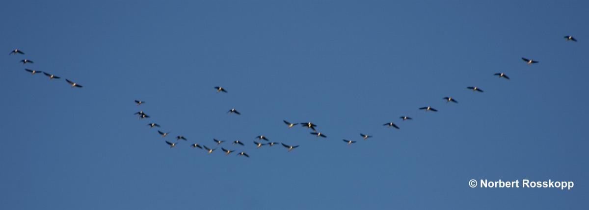 , Graugänse auf dem Flug ins Winterquartier.
