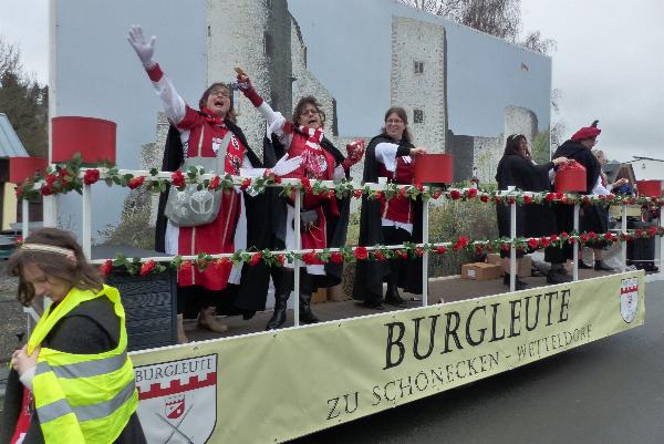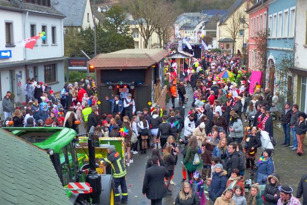 Eine richtig großer, teilweise aber auch sehr lauter Karnevalsumzug fand an diesem Samstag in Schönecken statt. Es ist schwer zu schätzen, aber es mögen zwischen 3 bis 5 Tausend Teilnehmer gewesen sein, machen Sie sich im weiteren Verlauf selbst ein Bild davon. Aus Schönecken gab es vier Wagen: Prinzenwagen, .Burgleute, Handwerkerverein (Thema Burghotel) und die Junggesellen-Sodalität (Thema Kloster). Viele, teilweise sehr schön zurecht gemachte Fußgruppen wurden gesichtet, Rolf hat einige davon im Bild festgehalten. Trotzt des hohen Lärmpegels eine gelungene Veranstaltung, Wünschenswert wären mehr Themenwagen, aber die Zeit lässt sich nichtt zurück drehen, nichts bleibt wie es ist. Dank an den KV Schönecken, den MV Schönecken, die Feuerwehr, das Rote Kreuz und die Polizei, die alle maßgeblich zum Gelingen beigetragen haben. Anschließend wurde die Schönecker Gastronomie, besonders das FIF, stark von den Besuchern frequentiert. | ||