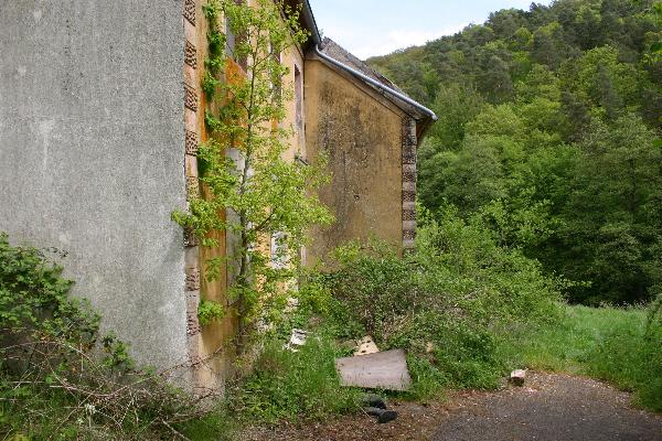 Die Rückseite des Gebäudes, die Natur ergreift Besitz von dem Anwesen, innen und außen.