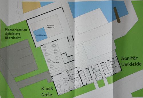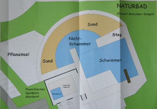 Campingplatz für Wohnmobile: - Anlegung von Stellplätzen auf den noch zu erwerbenden Parzellen oberhalb des Bades. - Stellplätze und Zufahrten in Terassenform. - ca. 19 Stellplätze. - Nutzung der Sanitärräume des Bades. - Frühstück/Essensmöglichkeit im neuen Cafe/Kiosk. - Zentrale Ver- und Entsorgung auf dem Platz. |