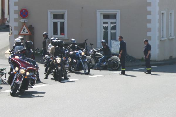 Immer wieder einmal wollten ortsunkundige Biker den Flecken durchqueren, sie mussten wieder umdrehen, und die Feuerwehr gab ihnen die richtigen Umgehungstipps. |