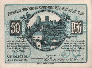 mit Motiv Burgruine, 50 Pfg. von 1921. |