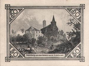 mit Motiv "Burgruine Schönecken" auf der Vorderseite und der Kronenburg