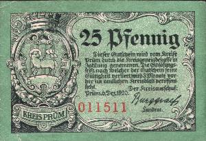 mit Motiv "Burgruine Schönecken" auf der Rückseite, 25 Pfg. von 1920. |