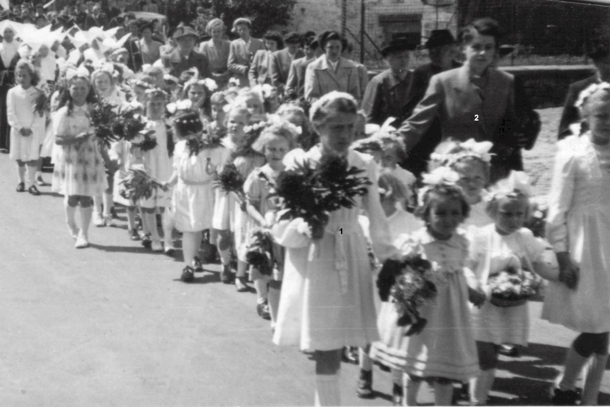 Scheffels (1) und Lehrerin Floss (2).Im Hintergrund links sieht man