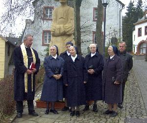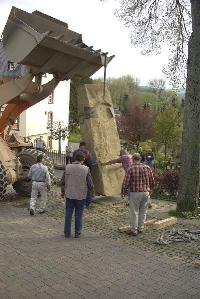 Der Kulturkreis Altes Amt hat es möglich gemacht: Am Mittwoch, dem 28.04.2004 wurde ein 5 Tonnen schwerer gelber Sandstein angeliefert, aus dem der Bildhauer Joan Thimmel ein Denkmal für die Vinzentinerinnen auf dem Alten Markt, gleich unterhalb des Klosters erschaffen wird. Jede Entstehungsphase dieses Denkmals werden wir in diesen Seiten dokumentieren. |