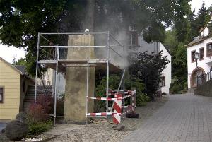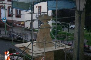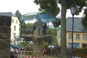 Herrn Thimmels Arbeit wird von der Schönecker Bevölkerung viel beachtet, die Schaffensstätte ist zur Zeit ein Anziehungspunkt, der zu einem Schwätzchen einlädt. |