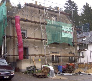 Wände neu aufgemauert. Im linken unteren Gebäudeteil entsteht eine Garage. |